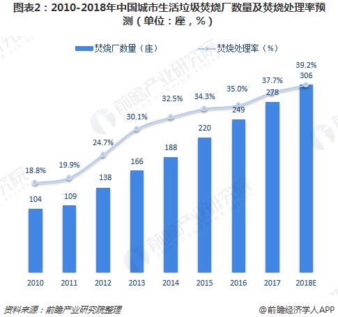 2017年,我國城市生活垃圾焚燒處理量已達到7589萬噸,同比增長2.86%;此外,焚燒垃圾場數(shù)量從2010年的104座增加至2017年的278座,焚燒處理率由2010年的18.8%提高至37.7%。
