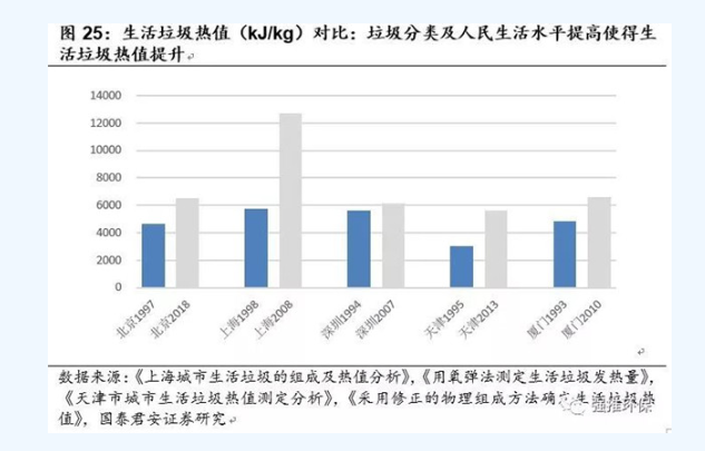 ②人民生活水平提高使得生活垃圾熱值自然提升:在中國,垃圾中不可燃物逐年降低和可燃物的逐年上升,熱值在過去十幾年間有較快的增長。隨著經(jīng)濟(jì)發(fā)展和人民生活水平提高,生活垃圾熱值有提升趨勢。