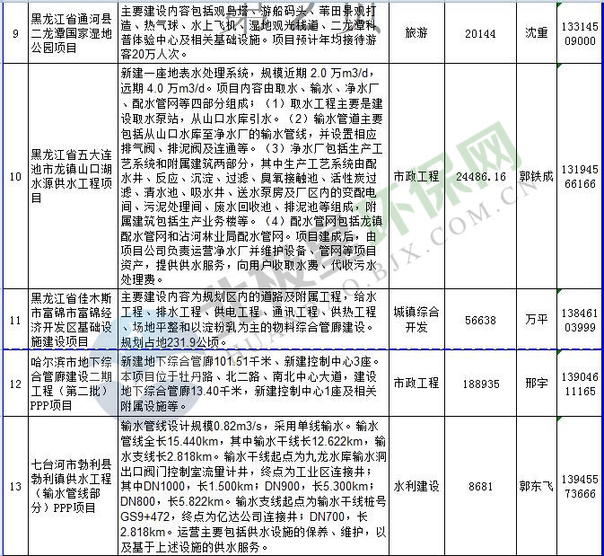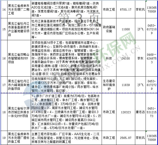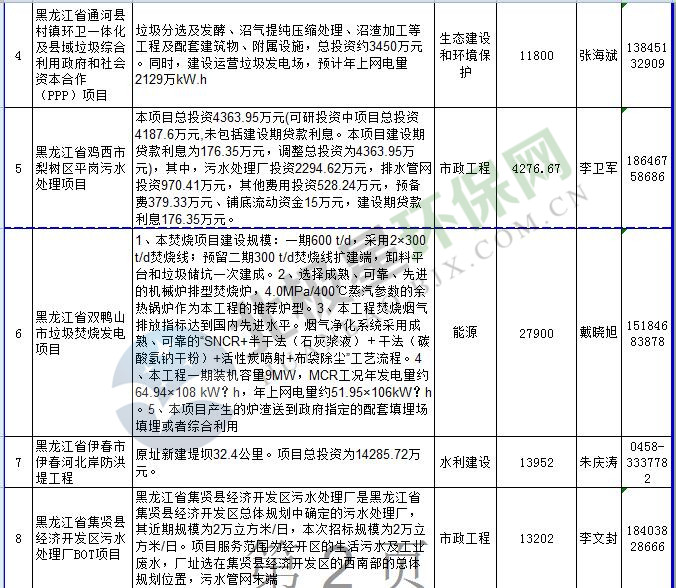 黑龍江推介PPP項目表(涉環(huán)保部分)