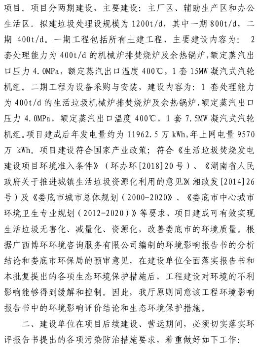 日前,湖南生態(tài)環(huán)境廳批復(fù)了婁底市城市生活垃圾焚燒發(fā)電項目環(huán)境影響報告書。
