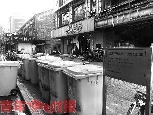 上城區(qū)市容環(huán)衛(wèi)亮燈監(jiān)管科工作人員徐瑋棟說(shuō),上城區(qū)不少道路都是杭州的主城區(qū)主干道,路雖不寬,可由于離景區(qū)近,都是重點(diǎn)關(guān)注路段。為了消除垃圾桶亂放帶來(lái)的環(huán)境等問(wèn)題,他們推出了好幾個(gè)像東坡路66號(hào)集置點(diǎn)這樣的地方,由于這是上城區(qū)第一個(gè)集置點(diǎn),所以當(dāng)初還設(shè)立了牌子,其他地方則不一定設(shè)牌了,“集置點(diǎn)主要集中在沿街商鋪、餐飲店集中的地區(qū)。平時(shí),垃圾桶就在店家,到了清運(yùn)時(shí)間點(diǎn)拖出來(lái)。清運(yùn)過(guò)后,店家再將垃圾桶拖回店內(nèi)。”