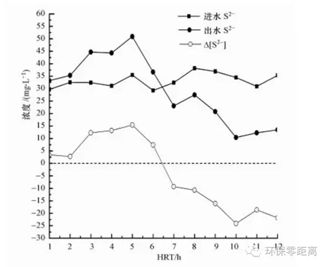 圖 4 UASB反應器內(nèi)S2-濃度隨HRT變化情況