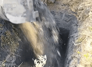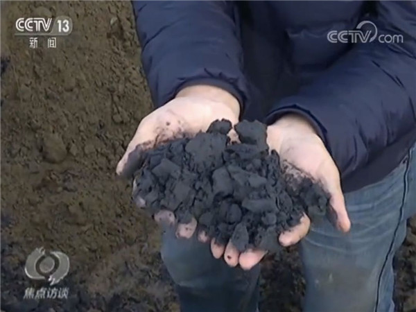 有關(guān)部門決定讓友聯(lián)化工和項(xiàng)目承包方將這些單氰胺廢渣和生活垃圾拉走。但是村民們稱這些化工垃圾并沒有全部拉走。記者找來了一臺挖掘機(jī)想一探究竟。挖掘機(jī)一開始挖,就發(fā)現(xiàn)了帶著強(qiáng)烈氨氣氣味的黑色物質(zhì)。