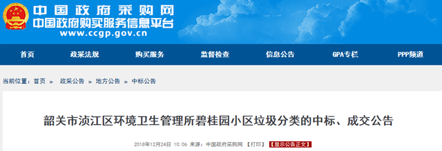 原標(biāo)題:中國(guó)天楹中標(biāo)99.98萬(wàn)韶關(guān)碧桂園小區(qū)垃圾分類項(xiàng)目