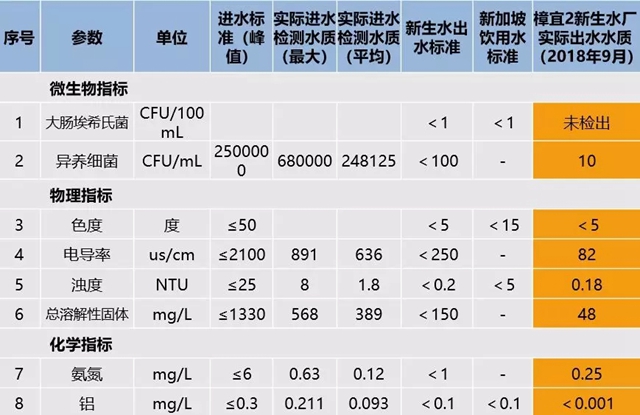 新生水出水水質(zhì)具有濁度非常低、鹽分大幅低于飲用水標(biāo)準(zhǔn)等特點。眾多周知,新興污染物在環(huán)境中的存在濃度雖低(通常在μg/L到ng /L之間),但是會對生態(tài)和人類健康造成很大的負(fù)面影響,包括抗藥微生物種類和數(shù)量的增加、干擾生物體的生殖發(fā)育和荷爾蒙的合成、破壞動物的免疫系統(tǒng)等,嚴(yán)重時還會有致癌危險。賈第蟲病被列為全世界危害人類健康的10種主要寄生蟲病之一,隱孢子蟲病被列為引起人類最常見的6種腹瀉疾病之一。新生水工藝對新興污染物和兩蟲去除效率高,解決了常規(guī)飲用水設(shè)計工藝對以上污染物去除效果差的弊端,提高了飲用水安全性。