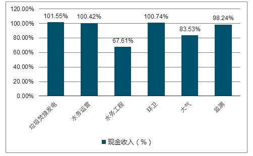 2017年垃圾焚燒發(fā)電現金收入比101.55%,高于其他細分行業(yè),表現出運營類業(yè)務良好的現金流情況。