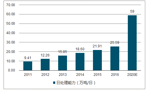 生活垃圾焚燒無害化處理能力(萬噸/日)圖
