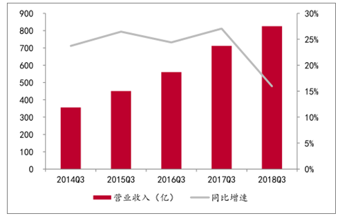 調整后環(huán)保板塊2014Q3-2018Q3營業(yè)收入