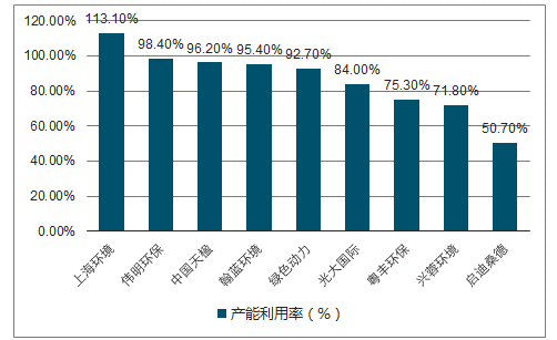 垃圾焚燒上市公司產能利用率比較圖