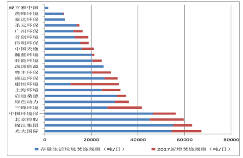 二十二家固廢龍頭企業(yè)生活垃圾焚燒規(guī)模圖