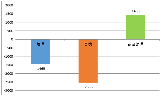餐廚垃圾不同處置方法經(jīng)濟效益(萬元)