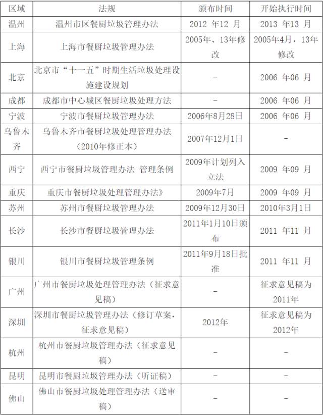 此外, 2015 年 9 月,浙江省發(fā)布《浙江省餐廚垃圾資源化綜合利用行動計劃》,規(guī)定開展省級試點實施市長負責制,通過領(lǐng)導負責的制度來加速推進餐廚垃圾處理建設(shè)。