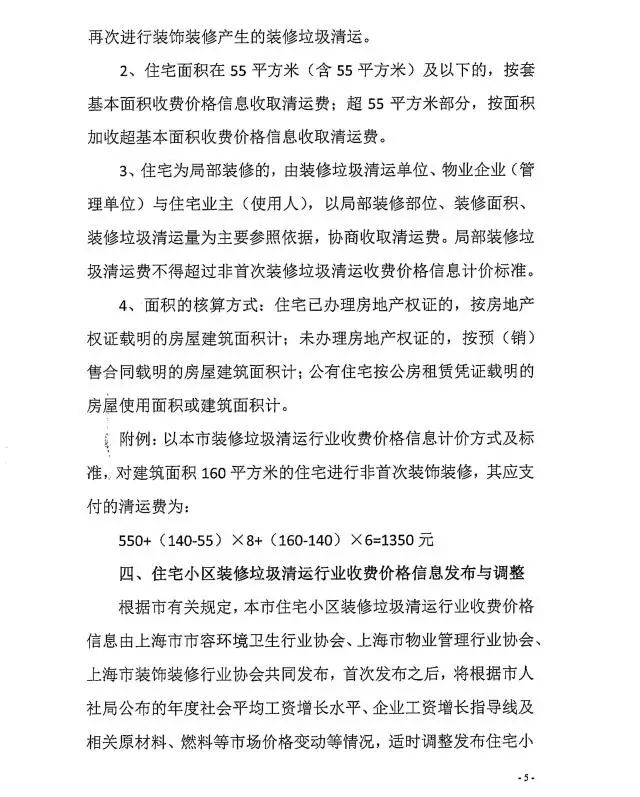 8月17日,《上海住宅小區(qū)裝修垃圾清運行業(yè)收費價格信息》(下稱《價格信息》)公布,《價格信息》明確了住宅小區(qū)裝修垃圾清運行業(yè)收費價格信息的定義,明確收費價格主要成本構(gòu)成、計價方式、標準以及收費主體。住宅小區(qū)裝修垃圾清運,根據(jù)首次和非首次裝飾裝修、基本面積等標準計價,此外,機關(guān)、企事業(yè)單位裝飾裝修垃圾清運處置費將根據(jù)清運、分揀等環(huán)節(jié),按市場化、全成本要素,協(xié)商收取。