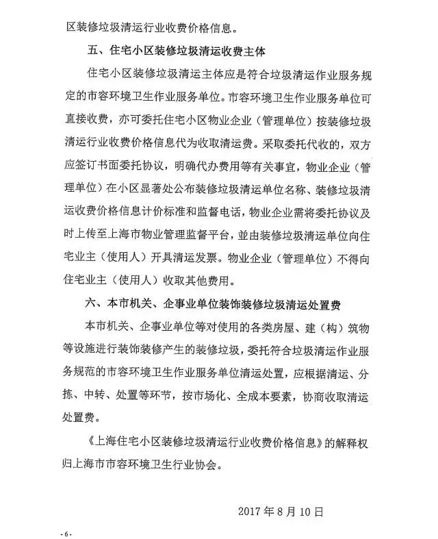 《上海市住宅小區(qū)裝修垃圾清運行業(yè)收費價格信息》全文內(nèi)容如下: