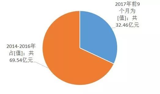 圖3 2014年至2017年9月危廢并購(gòu)交易規(guī)模-并購(gòu)方統(tǒng)計(jì)圖