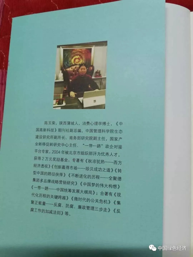 陳玉榮,消費(fèi)心理學(xué)博士、MBA工商管理碩士、經(jīng)濟(jì)學(xué)碩士,曾在原國(guó)家主席李先念同志秘書、國(guó)家統(tǒng)計(jì)局原局長(zhǎng)李成瑞同志身邊從事過(guò)私人助理工作;在國(guó)家計(jì)委對(duì)外經(jīng)濟(jì)研究所、商務(wù)部國(guó)際經(jīng)濟(jì)貿(mào)易合作研究院、北京大學(xué)城市規(guī)劃研究所等從事過(guò)研究和頂層設(shè)計(jì)規(guī)劃等工作;在中國(guó)企業(yè)報(bào)、中國(guó)信息報(bào)和中國(guó)投資促進(jìn)雜志擔(dān)任過(guò)副主編工作;在著名民營(yíng)企業(yè)匹夫品牌管理集團(tuán)、珍貝集團(tuán)、聯(lián)想集團(tuán)、國(guó)度投資集團(tuán)等從事總裁助理兼企劃部長(zhǎng)工作等。2004年被北京市組織部評(píng)為優(yōu)秀人才稱號(hào)。現(xiàn)任全國(guó)三農(nóng)調(diào)研中心副主任、國(guó)家產(chǎn)業(yè)轉(zhuǎn)移促進(jìn)中心高級(jí)顧問(wèn)等。出版專著作品有《秋涼猶熱:西方經(jīng)濟(jì)透視》、《理想與改革:社會(huì)主義的改革歷程》、《不斷進(jìn)化的經(jīng)營(yíng):全聚德集團(tuán)多品牌戰(zhàn)略營(yíng)銷》、《轉(zhuǎn)型中國(guó)的路徑抉擇》、《中國(guó)夢(mèng)的偉大構(gòu)想》、《一帶一路:中國(guó)統(tǒng)籌發(fā)展大棋局》、《藍(lán)色跨越:中國(guó)海洋強(qiáng)國(guó)的生態(tài)邏輯》等;出版合著作品有:《集聚正能量:反腐、防腐、廉政管理三步走》、《現(xiàn)代化進(jìn)程的跨越:貧富差距與犯罪率》、《微時(shí)代的危機(jī)公關(guān)》、《政府反腐工作的加減法則》等書,發(fā)表關(guān)于綠色經(jīng)濟(jì)、政治、貿(mào)易、投資、管理、營(yíng)銷、戰(zhàn)略規(guī)劃等論文300多篇。新近出版的《一帶一路:中國(guó)統(tǒng)籌發(fā)展大棋局》一書被國(guó)家新聞出版署列入重大選題備案,歡迎關(guān)注。
