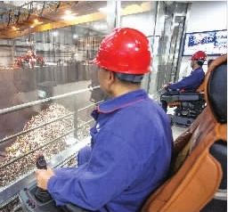 驅(qū)車沿黑麋峰蜿蜒的山路行駛,一路逶迤起伏,蒼翠欲滴。幾經(jīng)曲折面前豁然開朗,腳下,青草、野花、樹木,彌漫著暗香浮動(dòng)的清新空氣;不遠(yuǎn)處,冷卻塔、煙囪、垃圾儲(chǔ)坑、焚燒發(fā)電廠房等涂裝不同顏色的建筑鱗次櫛比。無(wú)法想象,這竟是垃圾焚燒發(fā)電廠!沿著一號(hào)廠房的參觀通道,每走一段就有不同顏色的燈帶,預(yù)示著進(jìn)入了不同的處理車間。透過清潔焚燒中心垃圾吊控制室的玻璃幕墻,一個(gè)巨大的抓斗從垃圾池內(nèi)緩慢地將垃圾抓起,把它們從燃燒到千度高溫的焚燒爐頂端投進(jìn)去,焚燒爐內(nèi)的高溫迅速將垃圾烤干焚燒?!坝辛死贌l(fā)電,長(zhǎng)沙的生活垃圾最終會(huì)告別填埋!”浦湘公司副總經(jīng)理段佳指著正在大口大口“吞食”垃圾的現(xiàn)代化焚燒設(shè)備,臉上洋溢著自豪的微笑。