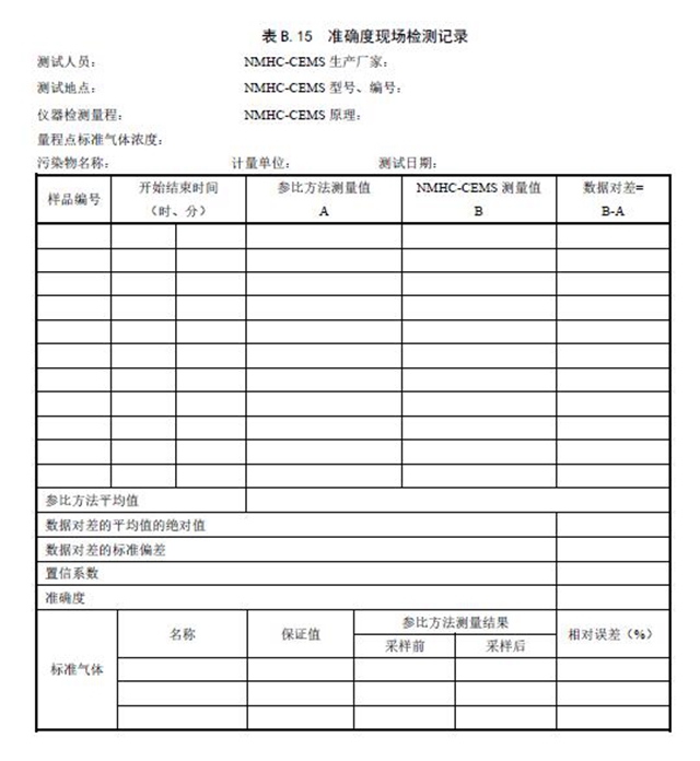 b) 當(dāng)校驗(yàn)結(jié)果不符合6.2.3 中準(zhǔn)確度指標(biāo)要求時,則應(yīng)擴(kuò)展為評估NMHC-CEMS 的準(zhǔn)確度校正,直至達(dá)到要求,所取樣品數(shù)不少于9 對。