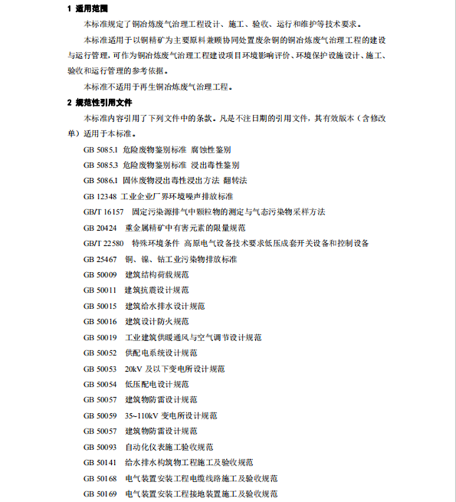 本標準規(guī)定了銅冶煉廢氣治理工程設計、施工、驗收和運行維護等技術要求。