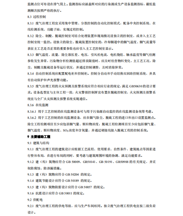 銅冶煉廢氣治理工程技術規(guī)范
