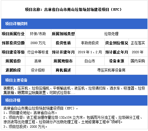 中項(xiàng)網(wǎng)獨(dú)家授權(quán)北極星固廢網(wǎng)發(fā)布最新垃圾處理項(xiàng)目(2019年1月14日更新),其中包括垃圾填埋場(chǎng)項(xiàng)目、餐廚垃圾處理項(xiàng)目、生活垃圾中轉(zhuǎn)站建設(shè)項(xiàng)目等。具體內(nèi)容如下: