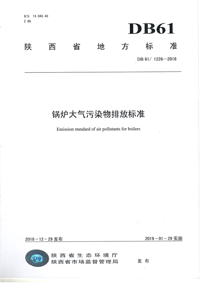 陜西省印發(fā)地方標準《鍋爐大氣污染物排放標準》DB 61/1226—2018。