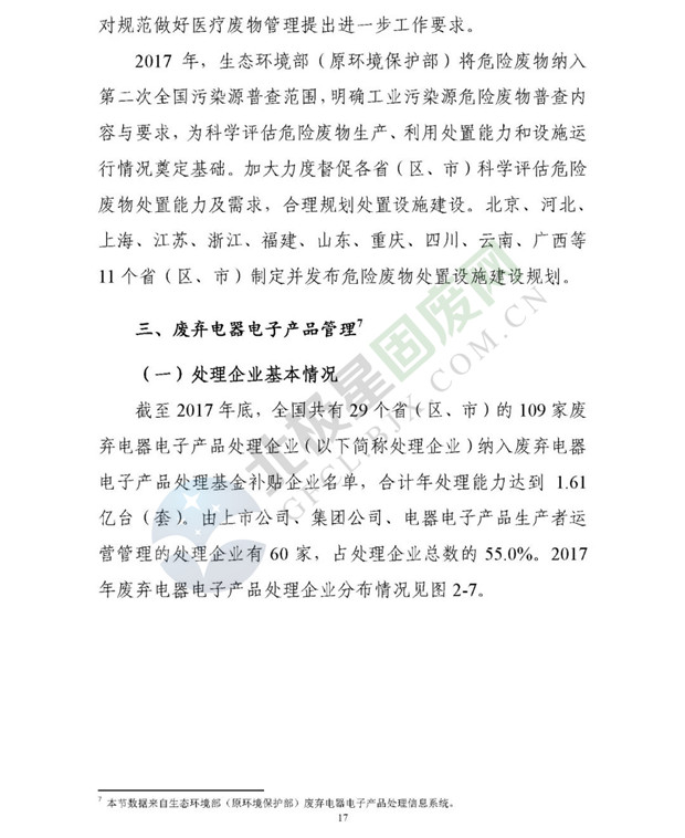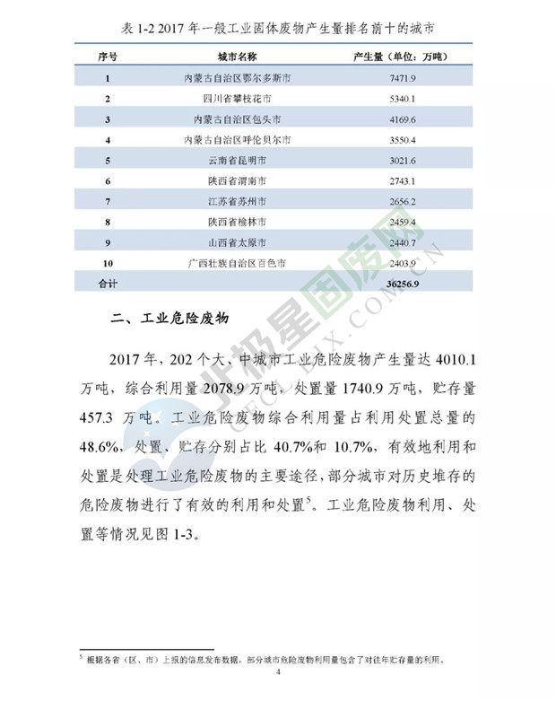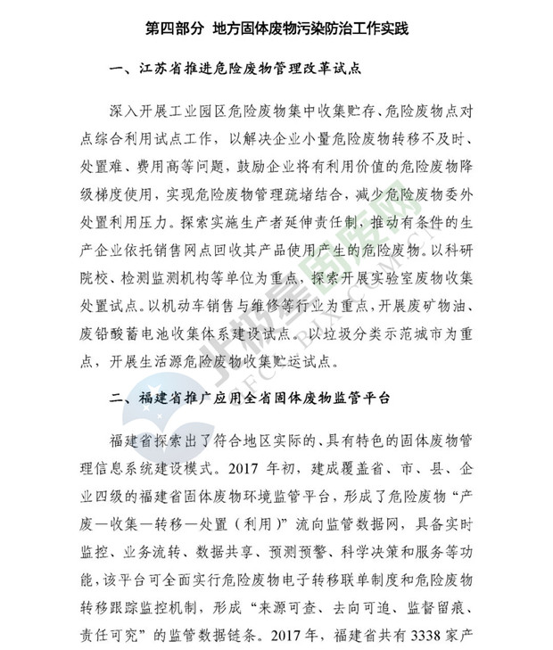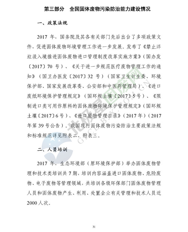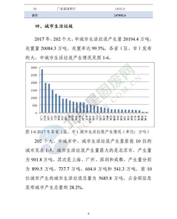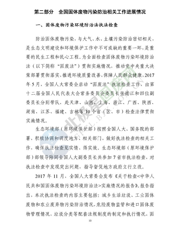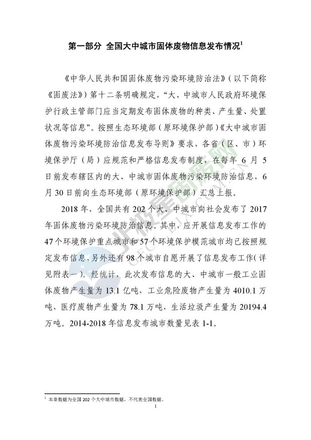 日前生態(tài)環(huán)境部發(fā)布了《2018年全國大、中城市固體廢物污染環(huán)境防治年報》,2014 年以來,為促進(jìn)環(huán)境信息公開、增進(jìn)社會公眾參與, 生態(tài)環(huán)境部(原環(huán)境保護(hù)部)每年定期以年報形式發(fā)布固體廢物污染環(huán)境防治信息。近日,生態(tài)環(huán)境部發(fā)布《2018年全國大、中城市固體廢物污染環(huán)境防治年報》,從大中城市信息發(fā)布、重點(diǎn)工作進(jìn)展、能力建設(shè)以及地方工作實踐等方面,系統(tǒng)介紹了2017年我國固體廢物污染環(huán)境防治工作的相關(guān)情況。