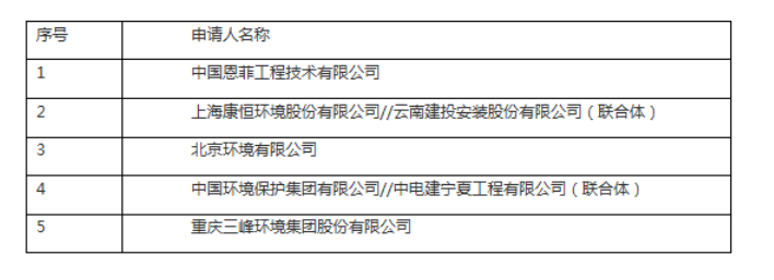 11月1日,因有效投標(biāo)人不足三家,首次招標(biāo)夭折;11月3日,項(xiàng)目發(fā)布二次招標(biāo)公告;12月6日,二次資審結(jié)果出爐。兩次入圍企業(yè)名單,經(jīng)對(duì)比發(fā)現(xiàn),圣元環(huán)保聯(lián)合體等企業(yè)退出,中國(guó)恩菲工程技術(shù)公司加入。二次資格預(yù)審入圍名單如下: