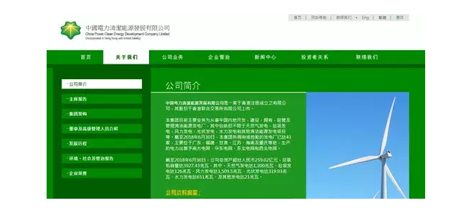 中國(guó)電力清潔能源發(fā)展有限公司是一家于香港注冊(cè)成立之有限公司,其股份于香港聯(lián)合交易所有限公司上市。上市代碼 00735。董事會(huì)主席王炳華。王炳華同時(shí)也是中國(guó)電力國(guó)際發(fā)展有限公司非執(zhí)行董事及董事局主席、中國(guó)電力新能源發(fā)展有限公司董事會(huì)主席及非執(zhí)行董事。