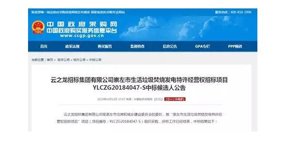 在廣西這樣的西南部地區(qū),垃圾焚燒領(lǐng)域大多剛開(kāi)始興建,且該項(xiàng)目規(guī)模不小,對(duì)于布局西南有著重要意義。該項(xiàng)目于2018年11月發(fā)布預(yù)審公告,吸引了14家企業(yè)入圍預(yù)審,包括眾多垃圾處理領(lǐng)域的一線(xiàn)名企。到2019年1月14日,項(xiàng)目公布了中標(biāo)候選人——中電國(guó)際新能源控股有限公司(以下簡(jiǎn)稱(chēng)“中電新能源”)。
