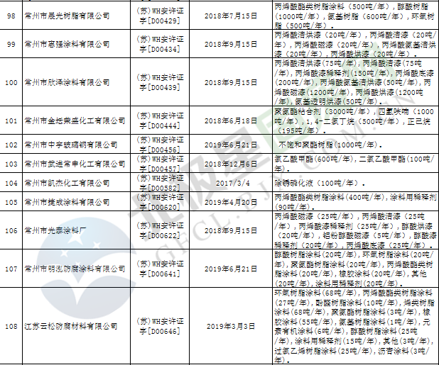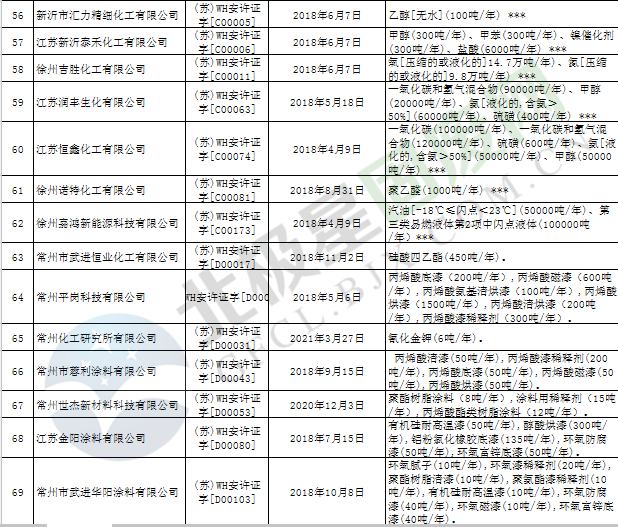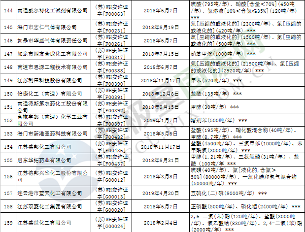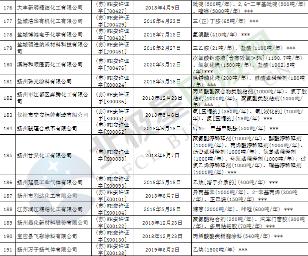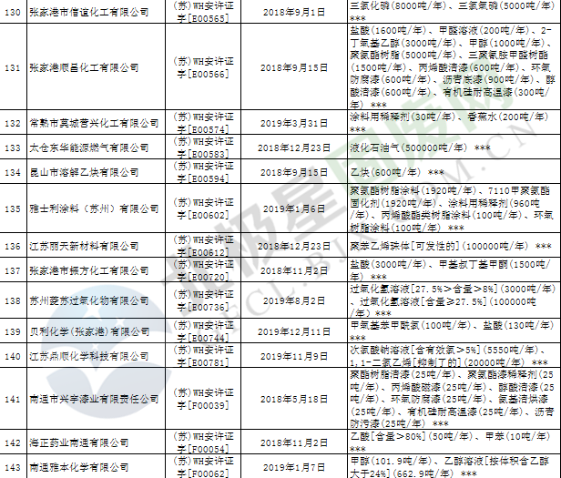近日,江蘇省應(yīng)急管理廳發(fā)布2019年第3號(hào)公告,公布199家危險(xiǎn)化學(xué)品生產(chǎn)企業(yè)安全生產(chǎn)許可證被注銷,詳情如下:
