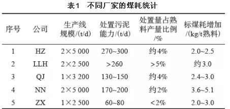 采用污泥霧化噴槍可以有效減少污泥直接進入回轉(zhuǎn)窯的工藝現(xiàn)象,之前NN公司污泥焚燒表現(xiàn)出對窯系統(tǒng)有巨大影響,最主要的原因就是前期污泥霧化噴槍壓縮空氣管道發(fā)生堵塞造成污泥沒有霧化而直接進入分解爐,沒有霧化的污泥在分解爐內(nèi)沒有完全燃燒直接經(jīng)過煙室進入回轉(zhuǎn)窯,造成窯的工況巨大波動,影響系統(tǒng)產(chǎn)質(zhì)量,進一步影響系統(tǒng)熱耗。操作上為了維持窯系統(tǒng)穩(wěn)定被迫采取增加系統(tǒng)風(fēng)量、提高入窯物料溫度等一些常規(guī)措施應(yīng)對,從而導(dǎo)致煤耗大幅度增加。