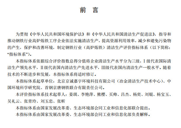 日前,國(guó)家發(fā)改委、生態(tài)環(huán)境部、工信部聯(lián)合印發(fā)了鋼鐵行業(yè)(高爐煉鐵)清潔生產(chǎn)評(píng)價(jià)指標(biāo)體系,規(guī)定了在高爐煉鐵工藝中有關(guān)大氣污染物的排放指標(biāo),包括顆粒物、二氧化硫、氮氧化物,其中高爐環(huán)境除塵及礦槽除塵配備有齊全的除塵裝置,確保無(wú)可見煙粉塵外逸。全文如下: