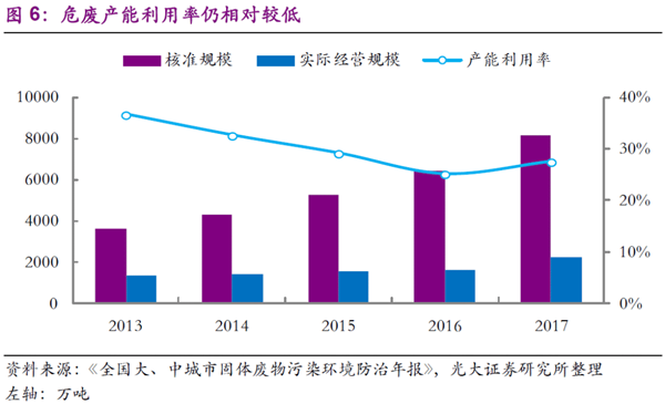 危廢產(chǎn)/處理量持續(xù)增長,產(chǎn)能利用率不容樂觀