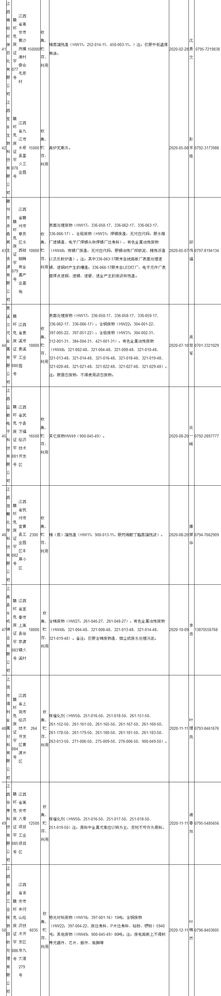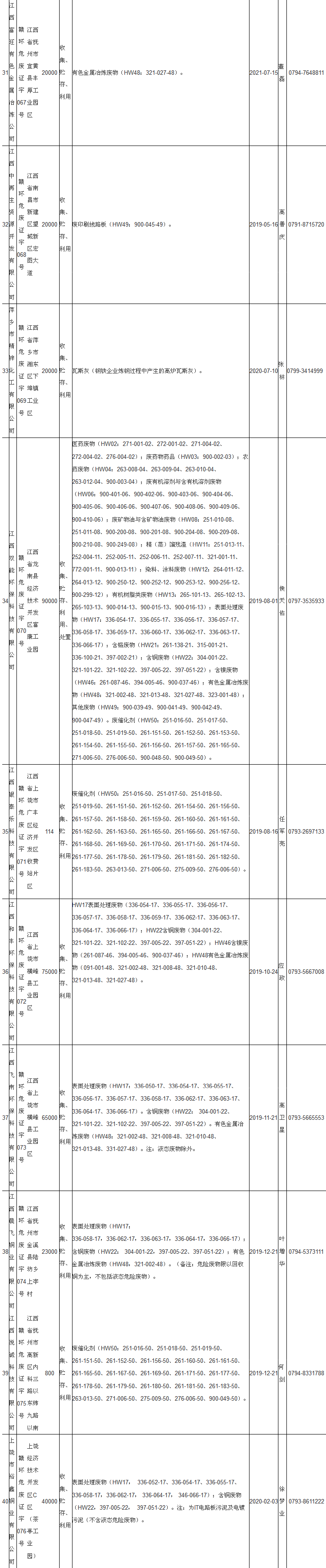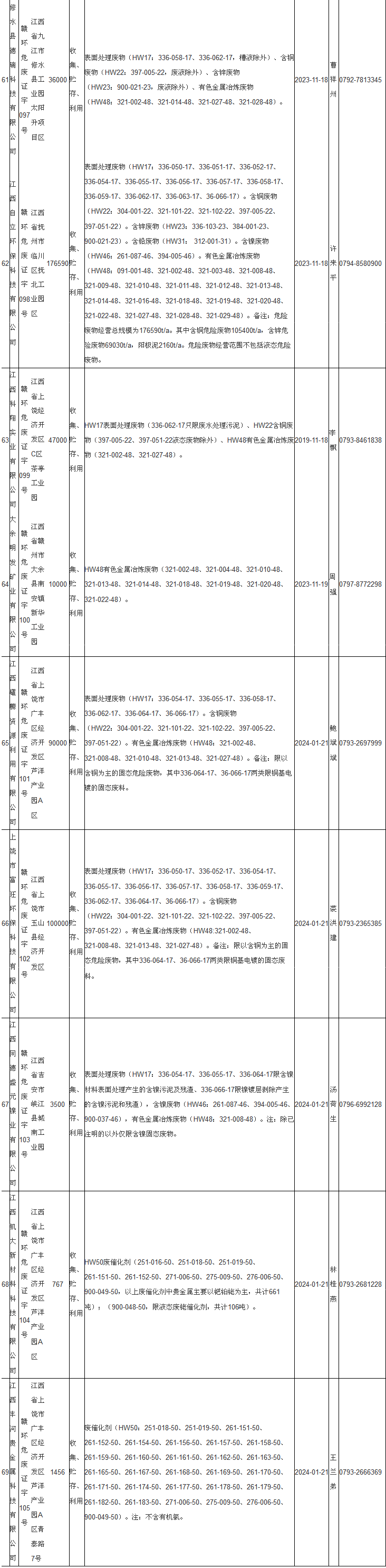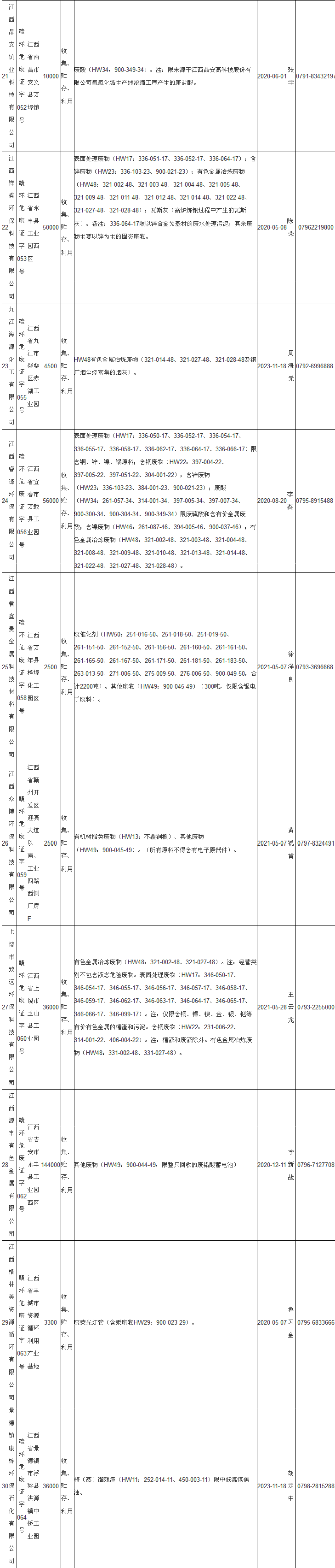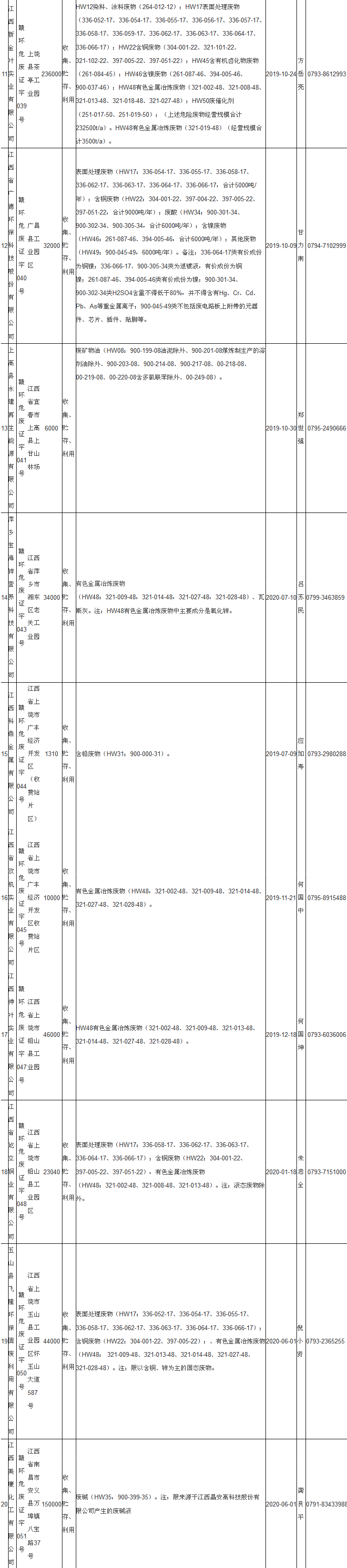 日前江西省生態(tài)環(huán)境廳發(fā)布了危險廢物經(jīng)營許可證名單,其中涉及69家公司,具體內(nèi)容如下: