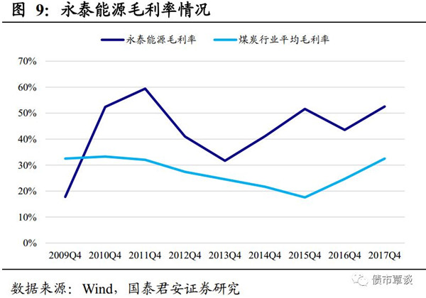 行業(yè)景氣低迷背景下的畸高毛利率。永泰能源是一家上市民企,主營業(yè)務方向為電力、煤炭和石化貿易。2014-2015年,煤炭行業(yè)產能過剩問題嚴重,煤炭價格呈下滑態(tài)勢,行業(yè)景氣度低迷,14、15年行業(yè)平均毛利率為21.66%和17.57%,分別同比下降11.76%和18.88%。而永泰能源卻在整個煤炭行業(yè)景氣低迷的背景下卻擁有相當不錯的毛利率,永泰在的煤炭業(yè)務14、15年毛利率分別為41.11%和51.64%,分別同比上升29.77%和25.61%。這在強周期行業(yè)低迷期是較為可疑的。
