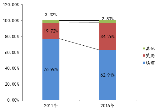 圖1 2011-2016年城鎮(zhèn)生活垃圾無害化處理情況