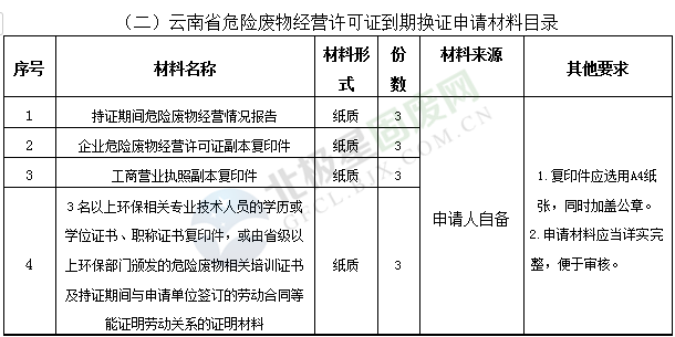 二、云南省危險廢物經(jīng)營許可證到期換證申請材料清單