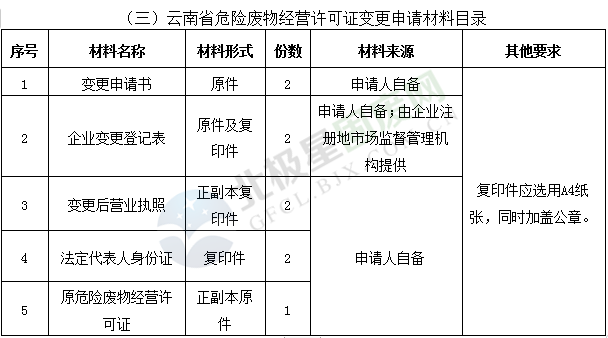三、云南省危險廢物經(jīng)營許可證變更申請材料清單