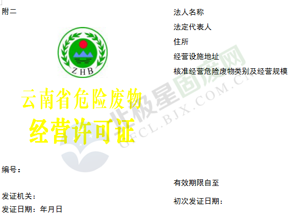 3.其他危險廢物綜合經(jīng)營許可證,由云南省環(huán)境保護廳審批頒發(fā)。