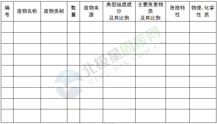 附:核準經(jīng)營的危險廢物類別、經(jīng)營規(guī)模和處置方式明細表、污染防治措施、環(huán)境監(jiān)測制度、新產(chǎn)生的危險廢物的管理計劃等。