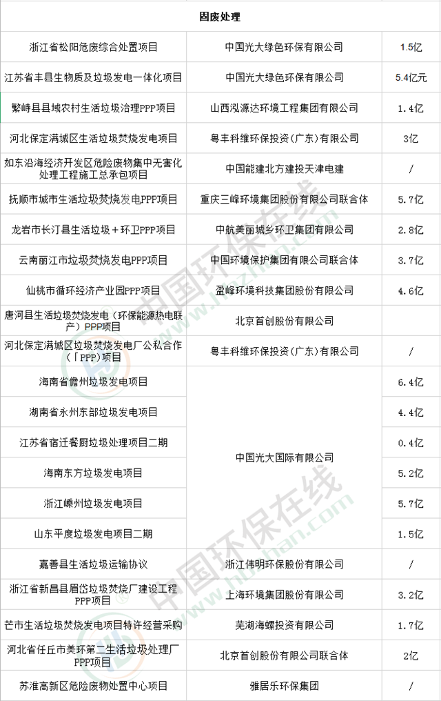 統(tǒng)計截至本文發(fā)稿時,梳理了一些重點的公開中標項目,而根據(jù)此次不完全統(tǒng)計也可以清楚地看到,水處理和固廢處理兩大板塊仍然是獨占鰲頭,新年開局之勢就頗為樂觀。前不久,本網(wǎng)也就固廢處理這個行業(yè)開年接收的利好信號進行了解讀,詳情點擊《一只腳踏進2019 就接收到了這些固廢行業(yè)發(fā)展信號》。