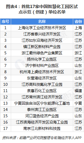 2018年11月30日,為落實(shí)國(guó)家相關(guān)產(chǎn)業(yè)政策,進(jìn)一步推動(dòng)我國(guó)化工園區(qū)智慧化建設(shè)進(jìn)程,受工業(yè)和信息化部原材料工業(yè)司委托,中國(guó)石油和化學(xué)工業(yè)聯(lián)合公布“中國(guó)智慧化工園區(qū)試點(diǎn)示范(創(chuàng)建)單位”名單,評(píng)選出上?;瘜W(xué)工業(yè)經(jīng)濟(jì)技術(shù)開(kāi)發(fā)區(qū)、江蘇省泰興經(jīng)濟(jì)開(kāi)發(fā)區(qū)、江蘇如東沿海經(jīng)濟(jì)開(kāi)發(fā)區(qū)等17家園區(qū)為首批示范單位。