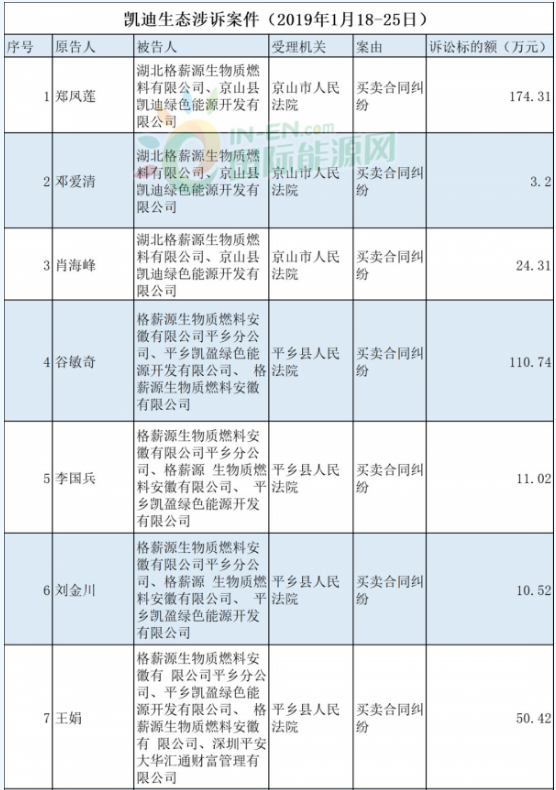 凱迪生態(tài)的危機在2018年又加深了一步,退市的傳言、拖欠工資的傳言時不時地出現在各大財經媒體的熱點頭條里。2018年5月,凱迪生態(tài)的有息債務本息余額合計超過240億元,2019年1月18日,凱迪生態(tài)發(fā)布公告稱,目前逾期債務共計116.47億元,占公司最近一期經審計凈資產106.33億元比例為109.54%。因為各種債務違約問題,凱迪生態(tài)已經深陷訴訟泥沼,國際能源網記者調查發(fā)現,僅2019年1月18-1月25日,短短的一周時間,該公司新增的訴訟案件已經多達17起,累計涉訴金額高達17.45億元。