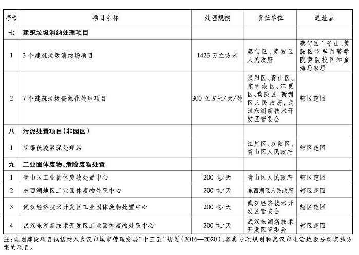 (三)推進建筑垃圾消納處置與資源化利用。采取山體修復、堆山造景、園林綠化等方式,規(guī)劃建設蔡甸區(qū)千子山、黃陂區(qū)空軍預警學院黃陂校區(qū)和金海馬家居等3處建筑棄土消納場所。建立“建筑棄料不出區(qū)、不出工地”管理模式,在成片拆遷、建設工地利用移動式設備,就地就近對建筑棄料進行處置和資源化利用。在漢陽區(qū)、青山區(qū)、蔡甸區(qū)、江夏區(qū)、東西湖區(qū)、黃陂區(qū)、新洲區(qū)、武漢東湖新技術開發(fā)區(qū)等區(qū)域各選址建設一座建筑棄料資源化處理廠。(責任單位:各區(qū)人民政府;配合單位:市發(fā)展改革委、市城管委、市城鄉(xiāng)建設委、市國土規(guī)劃局、市環(huán)保局)