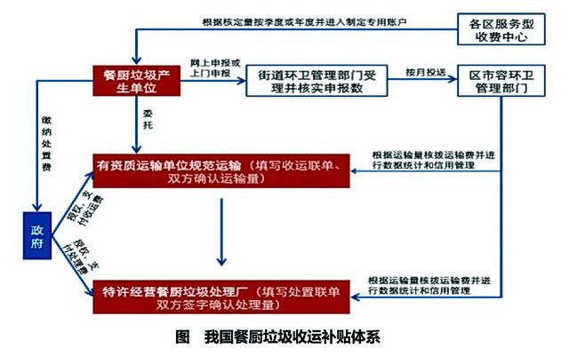我國(guó)餐廚垃圾收運(yùn)補(bǔ)貼體系。資料來(lái)源:餐廚垃圾處理行業(yè)2018年度發(fā)展報(bào)告