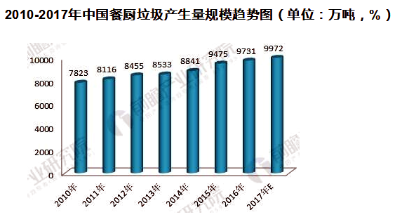前瞻產(chǎn)業(yè)研究院最新一份研究報(bào)告稱,中國(guó)餐廚垃圾占城市生活垃圾比重大致為37%~62%,主要城市每年產(chǎn)生的餐廚垃圾總量不低于6000萬(wàn)噸。如果就整個(gè)餐廚垃圾處理行業(yè)的發(fā)展空間而言,到2020年,餐廚垃圾產(chǎn)生量將達(dá)到12萬(wàn)噸/天,全國(guó)餐廚垃圾處理市場(chǎng)空間可達(dá)600億元。