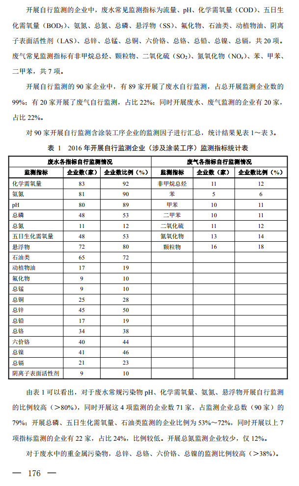 近日,生態(tài)環(huán)境部發(fā)布了《排污單位自行監(jiān)測技術(shù)指南涂裝 (征求意見稿)》編制說明,對廢水指標(biāo)監(jiān)測情況、廢氣指標(biāo)監(jiān)測情況(包括部分揮發(fā)性有機(jī)物)、固體廢物來源情況等進(jìn)行了統(tǒng)計(jì)與分析,全文如下: