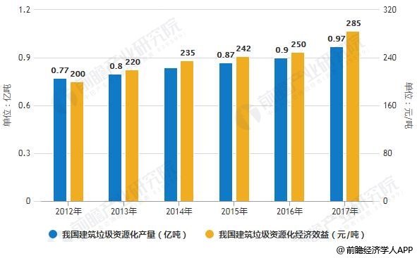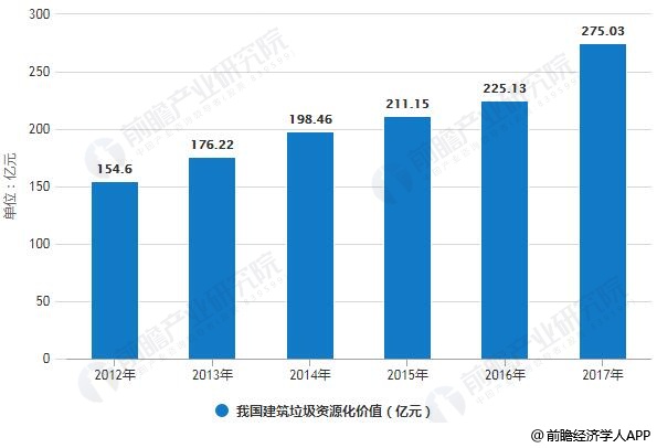 2012-2017年我國建筑垃圾資源化利用行業(yè)市場規(guī)模統(tǒng)計(jì)情況