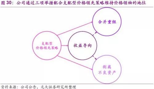 價格領(lǐng)袖是指經(jīng)由同業(yè)的龍頭公司現(xiàn)行制定產(chǎn)品某一期間內(nèi)的價格后,其它公司根據(jù)制定的價格,就其同質(zhì)產(chǎn)品確定其價格。行業(yè)的競爭對手如果期望維持已有的市場份額,只能與領(lǐng)先公司制定的價格相匹配。WM在通過兼并收購占據(jù)統(tǒng)治性的市場份額后,利用龍頭地位果斷選擇了支配型價格領(lǐng)先策略,進一步通過“收益導(dǎo)向策略”、“合并重組”、“剝離不良資產(chǎn)”這三項舉措的實施維持其價格領(lǐng)袖的地位。